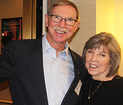 The pre-Banquet Reception was held in the Foyer of the Lansdowne Ballroom beginning at 1800, Saturday 28 April, with drink tickets used for the 3 hosted bar stations. The Banquet began at 1900 in the Ballroom, attended by over 280 Golden Eagles and guests. The Colors were presented by the NROTC Color Guard, and Mrs. Billie Cash led the group singing the National Anthem followed by brief remarks from the Pilot. After the meal, Pilot Howard DeCastro introduced the new Golden Eagles who joined since the San Diego Reunion, and before concluding the evening, Pilot DeCastro passed the “Stick” to the succeeding Pilot, VADM John Mazach, USN (Retired).